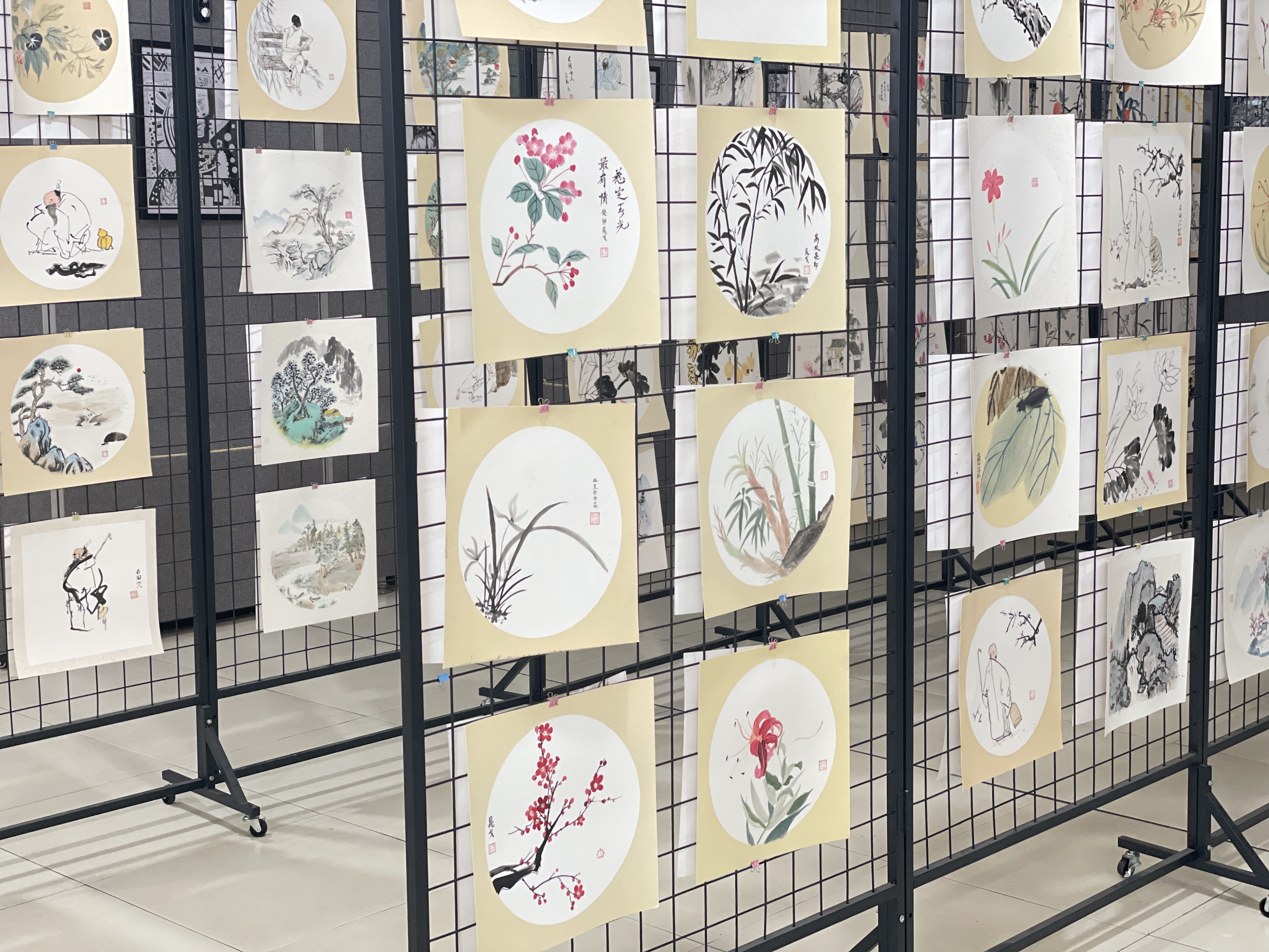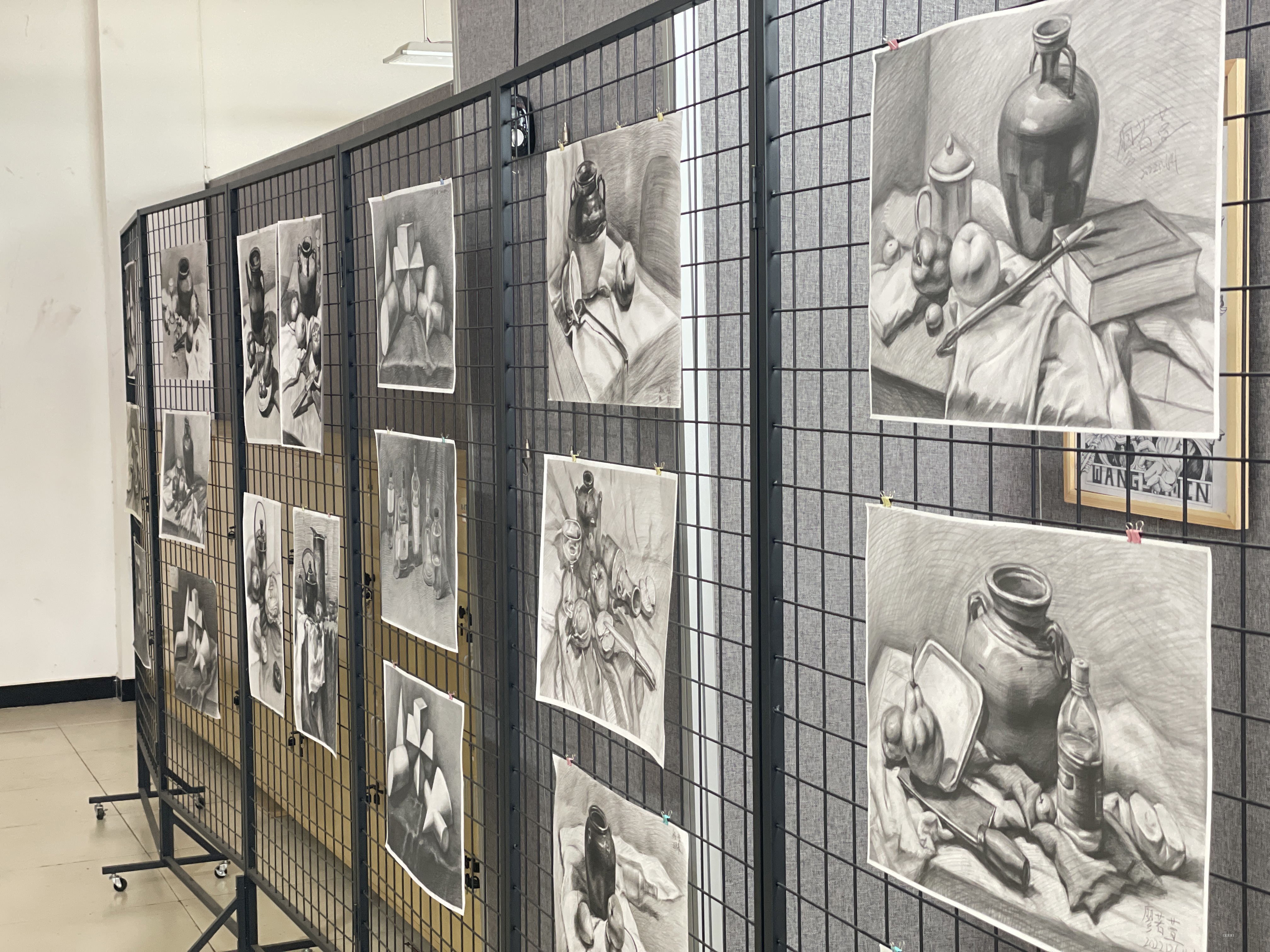 穆和楼一楼的走廊和美术教室里,一幅幅国画、书画、纸塑、素描、色彩、装饰画琳琅满目,墙上还有同学们亲手编织的手工编织作品。