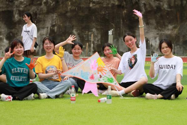 素质拓展活动以四个游戏展开,每个游戏都需要同学们的默契配合。在“你演我猜”环节,同学们展现了自己的表演天赋,整个游戏环节充满了欢声笑语。“同心击鼓”项目极度考验团队协作能力,需要每个成员之间高度配合,体现了每个成员的重要性。“跳大绳”、“放风筝”等系列游戏也进行了生动而又有趣的拓展,活动的趣味性让每个同学无不尽笑颜开。