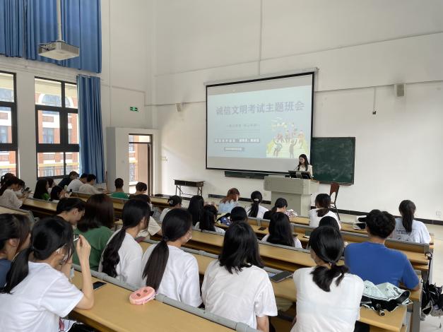 各年级辅导员以主题班会形式开展诚信考试教育,主题班会上各年级辅导员深入细致地了解班级学生考前准备情况,并与同学们分享学习经验,帮助大家提高学习效率。通过强调《普通高等学校学生管理规定》以及我校《学生手册》中关于考试违规认定办法、学生纪律处分规定等相关内容,告诫同学们要严肃对待考试,诚信考试。随后,辅导员结合我校近年来的考试违纪作弊案例进行讲解,让同学们了解违规行为所带来的严重后果,进一步认识到其危害。全体同学共同签订《诚信考试承诺书》,做一名诚信学生,认真对待每场考试,考出真实水平。最后,辅导员鼓励大家认真复习,注意合理规划时间,学以载道,诚信为本,严谨治学,稳静应变。
