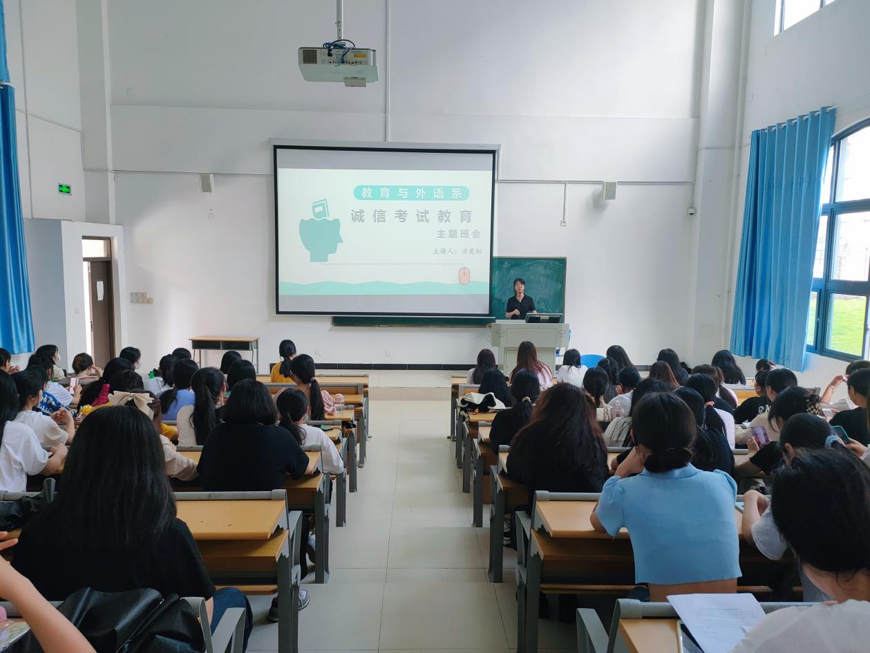 为了全面贯彻落实学院有关考试的相关要求,进一步加强学风建设,塑造严肃考风考纪,合力营造公平公正、诚信应考的良好氛围。6月23日,教育与外语系开展“诚信考试”文明教育主题班会。