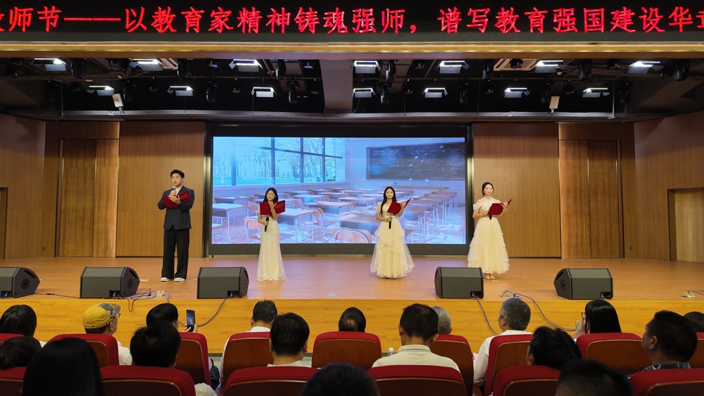 为向老师们表达感恩之情,同学们精心录制了教师节祝福视频,并现场演绎了舞蹈《九州同》、歌曲《一路生花》、朗诵《播撒星尘的摆渡人》等精彩节目,现场气氛温馨感人。