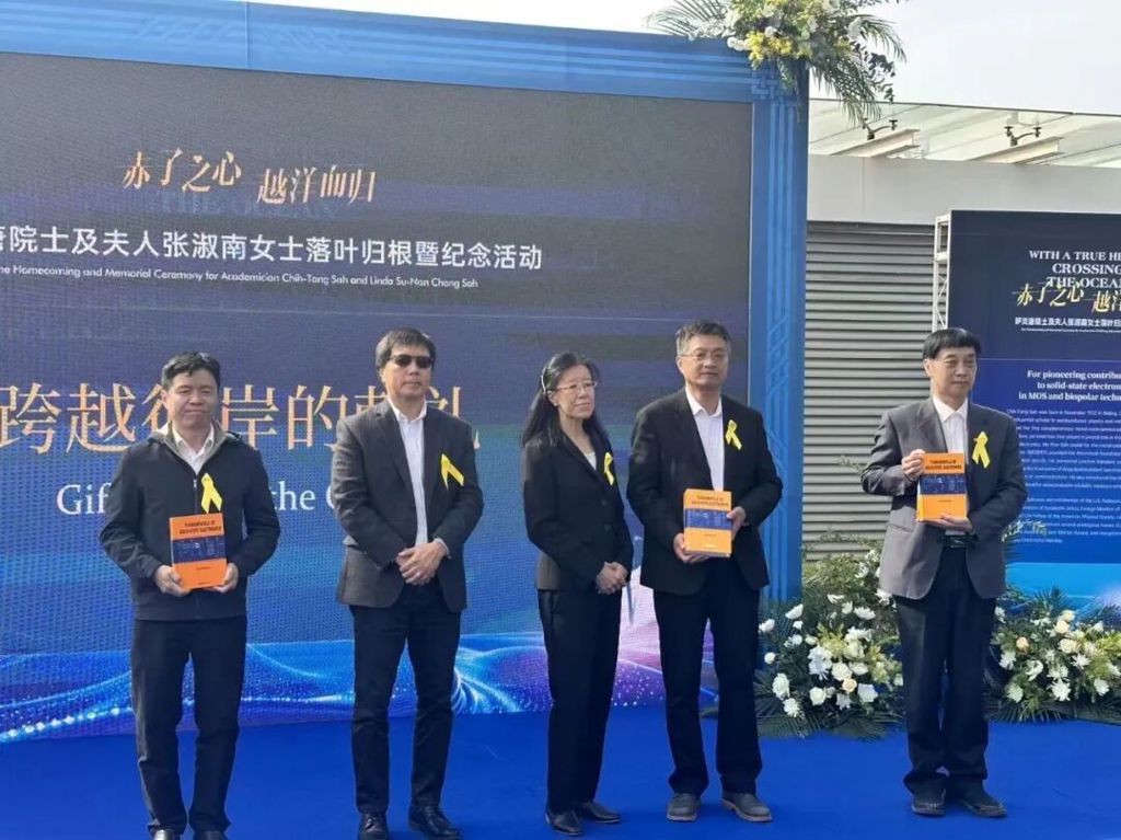 在庄重的仪式环节,萨支唐院士之女萨温伊女士、之子萨立元先生代表家属,向学院赠送了萨院士生前撰写的《固态电子学》一书。这份珍贵的馈赠,不仅承载着深厚的科学智慧,更寄托着对英华后学殷切的传承期许。