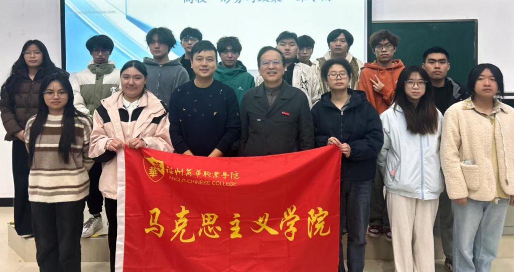 为深入贯彻落实习近平总书记在二十届中央政治局第五次、第六次集体学习时的重要讲话精神,全面落实全国教育大会、全国高校思想政治工作会议、学校思想政治理论课教师座谈会精神,按照教育部《普通高等学校马克思主义学院建设标准(2023 年版)》要求,我院执行院长陈为旭以《正确认识中国经济热点问题》为题,为2025级商务英语 1、2 班及马克思主义读书社学生讲授了一堂内容详实、生动深刻的形势与政策专题思政课,引导青年学生正确把握当前经济形势、坚定发展信心,感恩奋进,为奋力谱写中国式现代化福建篇章贡献青春智慧和力量。