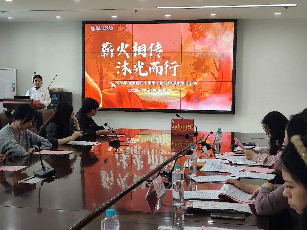 本次评审严格遵循《福建省红十字会南丁格尔护理奖学基金评审办法(暂行)》相关要求,规范落实个人自主申报、系部资格初审及为期3天的公示流程,最终确定2023级护理1班柯倩茹、2023级护理5班吴宇航、2023级护理8班林嘉鸿三位同学作为候选人进入现场评审环节。
