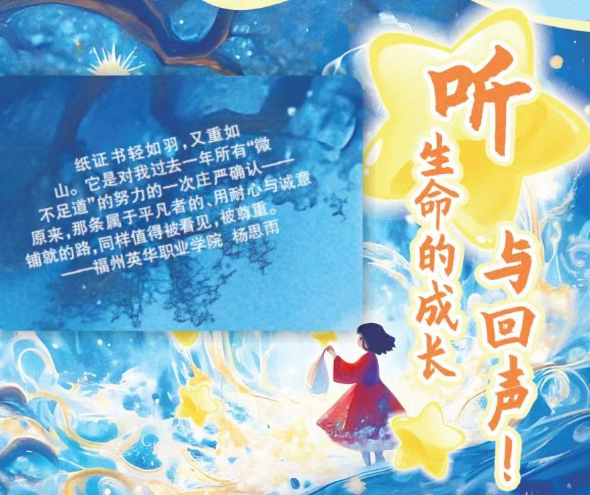 近日,海峡教育报社“成长与回声:我与奖学金的故事” 主题特刊正式推出,我院医疗护理系杨思雨同学、柯倩茹同学凭借真挚朴实的成长感悟成功入选,文章节选在报纸上登载发表。