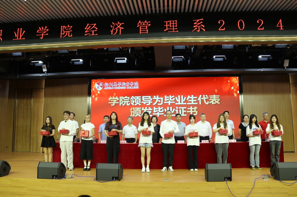 秋天相遇,盛夏分离。毕业季在即,福州英华职业学院经济管理系2024届毕业典礼于6月19日在学术报告厅隆重举行。毕业生们齐聚一堂,共同见证这一难忘而又庄重的时刻。学院董事长江澜、党委书记兰天金、第一副院长陈贞健、院长助理兼教务处处长陈增明、经济管理系常务副主任郑琳、党委工作部兼学院办公室主任林超祺、后勤管理处处长陈简、学工部副部长张伟、马克思主义院长胡继雄、公基部常务副主任蔡开祺及教师代表、辅导员、全体毕业生参加毕业典礼。毕业典礼由学生工作部副部长张伟主持。