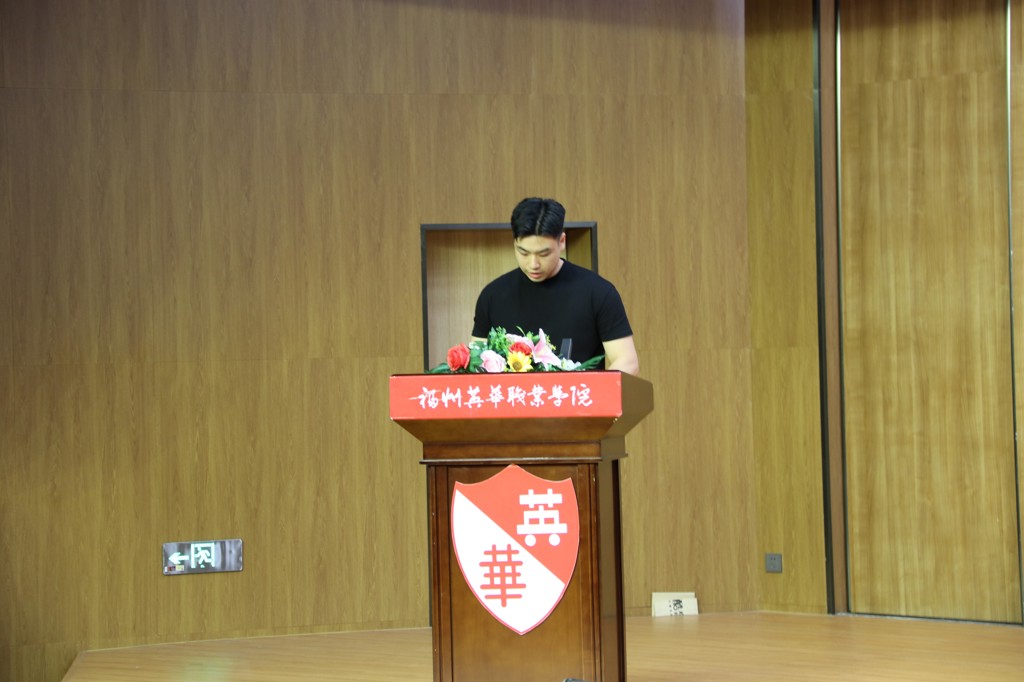 优秀校友许程凯发言。他希望学弟学妹们始终坚守初心,无论身处顺境逆境,都要心怀感恩,昂扬向上,做一名对国家有贡献、对社会有价值、对家庭有责任、对师长有感恩的英华人。