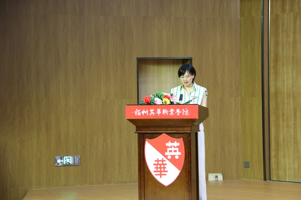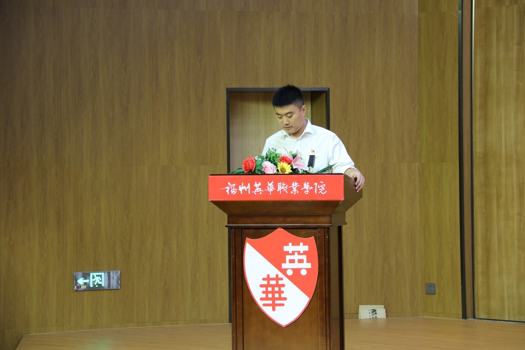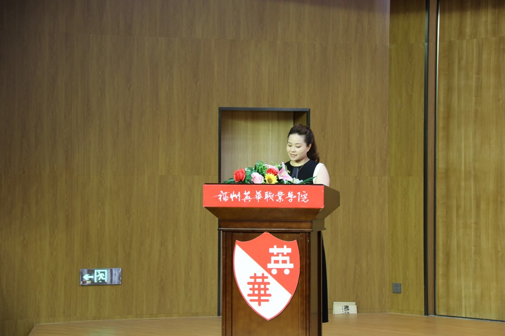 优秀毕业生家长代表肖凤琴发言。他表示,感恩学院领导、各位老师三年来对孩子们的关爱和培养,使孩子们在英华能够快乐地学习、健康地生活,度过难忘的大学生活。
