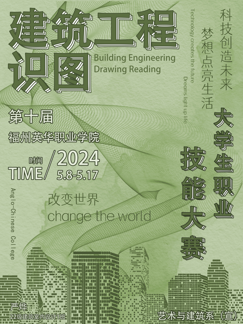在本次职教周活动中,艺术与建筑系各专业学生精心制作的海报琳琅满目,吸引了众多师生的目光,充分展现了职业教育的丰硕成果和独特魅力。