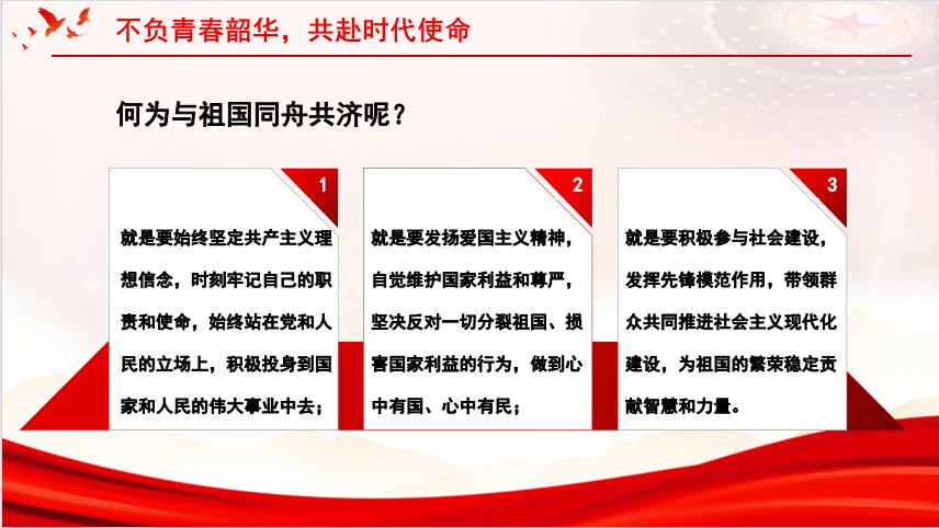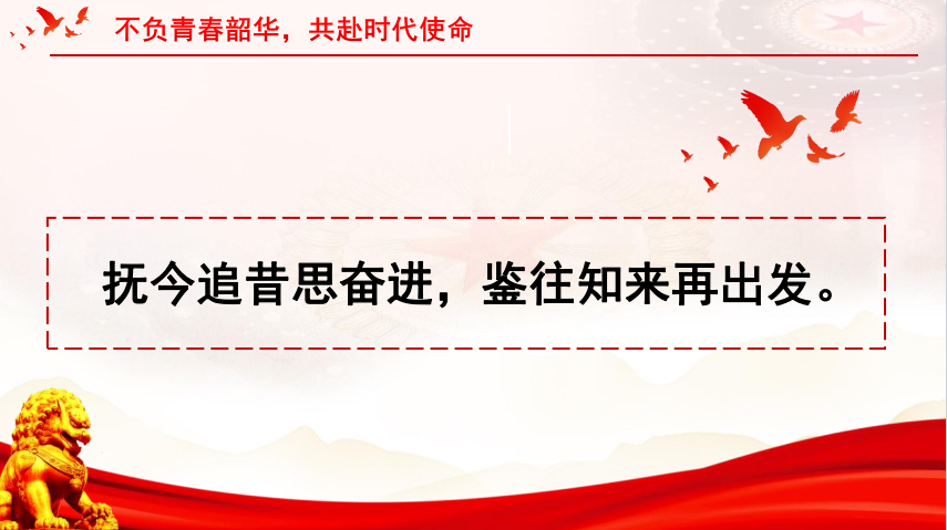 抚今追昔奋进。鉴往知来再出发。二十大报告指出,我们处在前所未有的变革时代,干着前无古人的伟大事迹。当代国际冲突,能源短缺,通胀加剧,正处于百年未有之大变局,越是风高浪急,我们越要与祖国同舟共济,那么何为与祖国同舟共济呢?就是要始终坚定共产主义理想信念,时刻牢记自己的职责和使命,始终站在党和人民的立场上,积极投身到国家和人民党伟大事业中去,就是要发扬爱国主义精神,自觉维护国家利益和尊严,坚决反对一切分裂祖国,损害祖国利益的事情,做到心中有国,心中有民,就是要积极参与社会建设,起到发挥先锋模范作用,带领群众共同推进社会主义现代化建设,为祖国的繁荣稳定贡献自己的智慧和力量。新征程已经开启,新蓝图催人奋进,青年的人生之旅已经同祖国的复兴之路一起铺展,在实现第二个百年奋斗必要的新征程上,让我们一起摆脱冷气向上走,不负青春韶华,共赴时代使命。