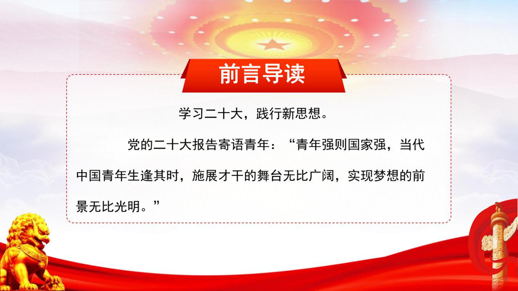 学习二十大,践行新思想,党的二十大报告寄语青年,青年强则国家强,当代中国青年生逢其时,施展才干的舞台无比广阔,实现梦想的前景无比光明。然而近年来,关于青年躺平的言论甚嚣尘上,让大众一度疑惑,当代中国青年怎么就变成了垮掉的一代?但事实上,青年们早已用自己独有的姿态,走出属于自己的长征路。大运会上年仅13岁的崔晨曦,刷新了亚运史上最年轻的个人项目冠军,神州十八号的宇航员正奔向属于他们的星辰大海,各行各业的年轻人肆意挥洒汗水,诠释着他们的青春,努力为国家贡献出属于自己的一份力量。