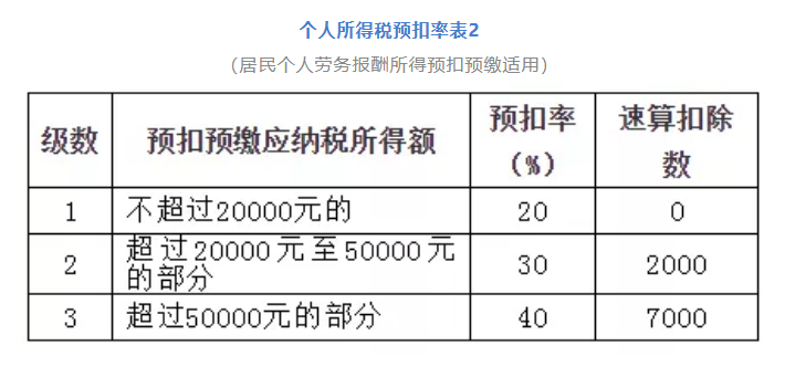 3、工资薪金和劳务报酬虽然都属于综合所得,但是预扣预缴个税的计算不一样。劳务报酬所得所得以收入减除费用后的余额为收入额。劳务报酬所得每次收入不超过4000元的,减除费用按800元计算;每次4000元以上的,减除费用按百分之二十计算。