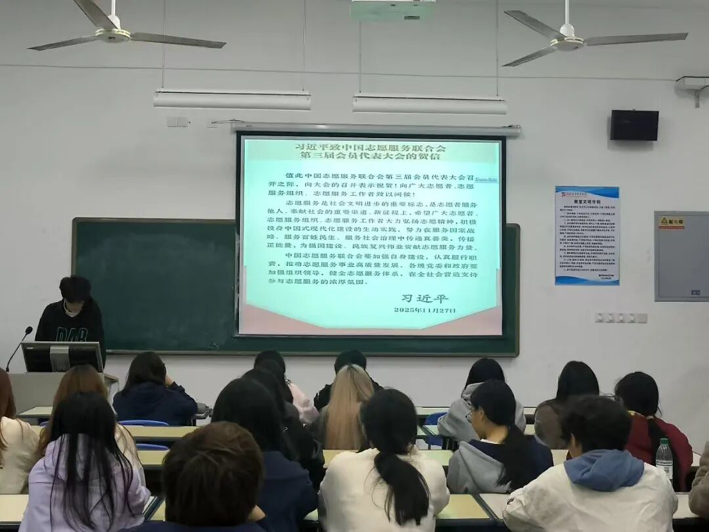 为深入学习贯彻习近平总书记致中国志愿服务联合会第三届会员代表大会贺信精神,准确把握新时代志愿服务的使命内涵,12月1日,我院信息技术系团总支在科学楼1105教室召开专题学习会,引导团员志愿者将“奉献、友爱、互助、进步”的志愿精神内化于心、外化于行。