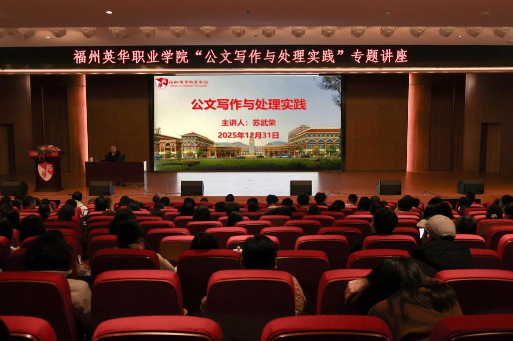 为全面提升全院教职工的公文写作与处理能力,进一步推动学院管理工作规范化、科学化,2025年12月31日下午,我院在学术报告厅举办“公文写作与处理实践”专题讲座。本次讲座特邀福建省公文领域的权威专家、原福建省政府办公厅二级巡视员、文电处处长苏武荣老师授课。讲座由副院长黄志宁主持,全院教职工参加培训。