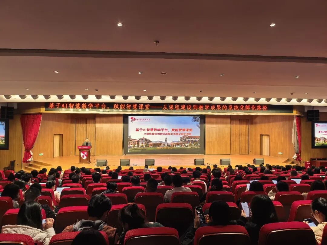 为积极响应国家教育数字化战略,推动人工智能技术与教育教学深度融合,近日,我院在学术报告厅举办“基于AI智慧教学平台,赋能智慧课堂—从课程建设到教学成果的系统化孵化路径”专题讲座。学院领导、教务处负责人、各系(院、部)主任及全体专任教师齐聚一堂,共同探索智慧教学发展新路径。