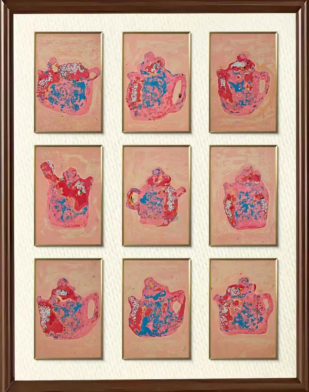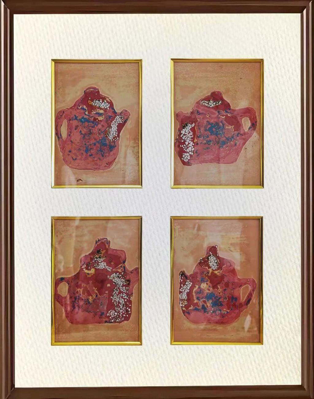 该作品以德化月记窑柴烧壶为创作蓝本,深度融合大漆工艺的独特表现力。柴烧壶的粗粝陶肌与火痕肌理,经大漆的髹饰、打磨与推光,在古朴质感中晕染出温润光泽。作品既保留了古窑柴烧的自然意趣,又赋予传统器物当代艺术的全新生命力。