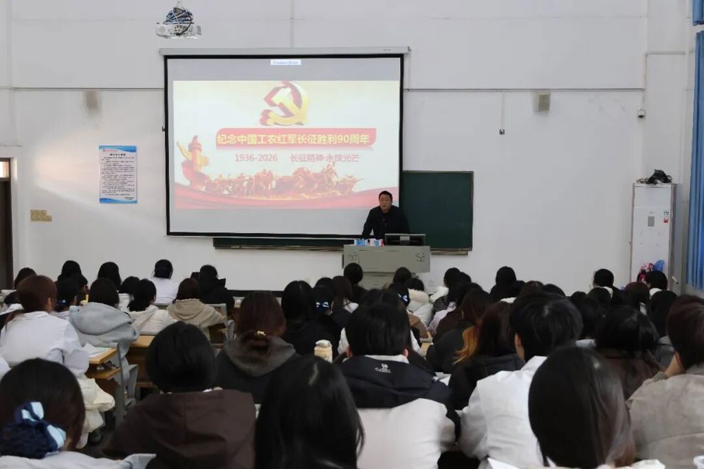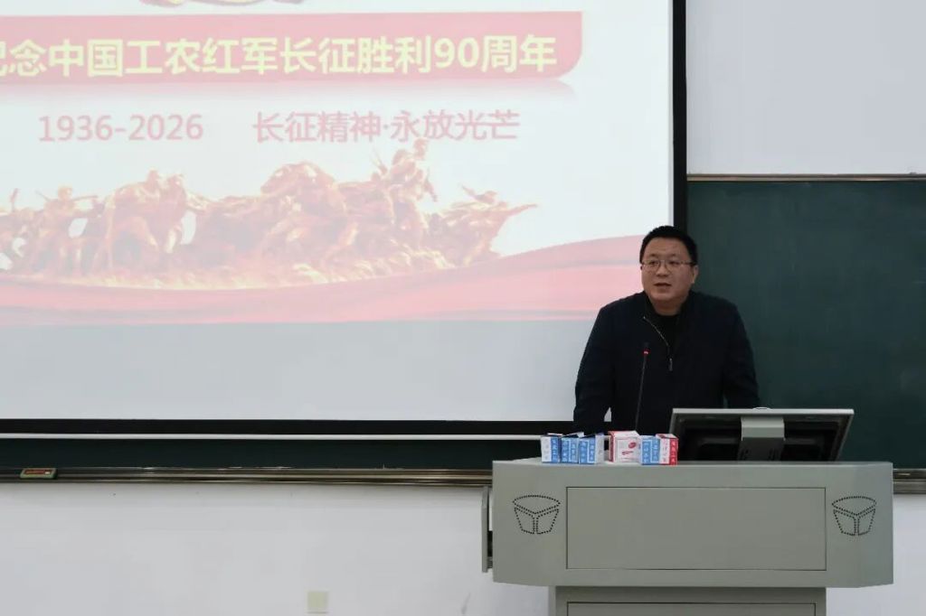 陈硕以“纪念中国工农红军长征胜利90周年”为主题,为学子们讲授了一堂深刻的红色思政课。授课中,他带领学子们回望1934年至1936年那段波澜壮阔的远征岁月,详细讲述中央红军及各路红军长征的艰难历程,深入解读长征胜利的历史意义与时代价值。结合湘江战役、遵义会议等经典历史场景,他生动诠释了长征精神中“不怕牺牲、排除万难、争取胜利”的核心内涵。陈硕指出,90年风雨兼程,长征精神始终是激励中国人民奋勇前进的强大精神动力。作为新时代青年大学生,传承长征精神,就是要坚定理想信念、锤炼坚韧意志、厚植爱国情怀、牢记青年使命,以实际行动赓续红色血脉、续写时代华章。