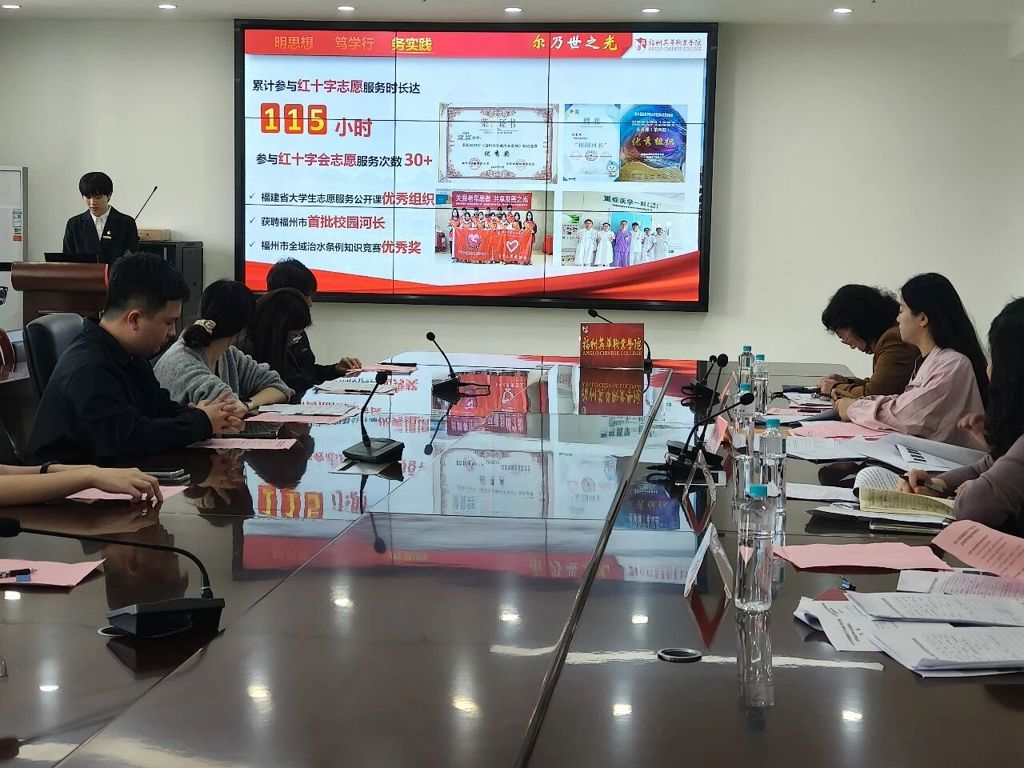 评审会上,林杰首先就本次奖学金的评选标准、评分细则及工作要求作详细说明,明确本次评选严格对照省红十字会基金评审要求,重点审核综合成绩排名、红十字志愿服务时长与护理志愿服务时长等指标。随后,三位候选人依次上台,围绕自身学业成绩、护理志愿服务、临床实践锻炼等核心内容,逐一展开现场汇报。