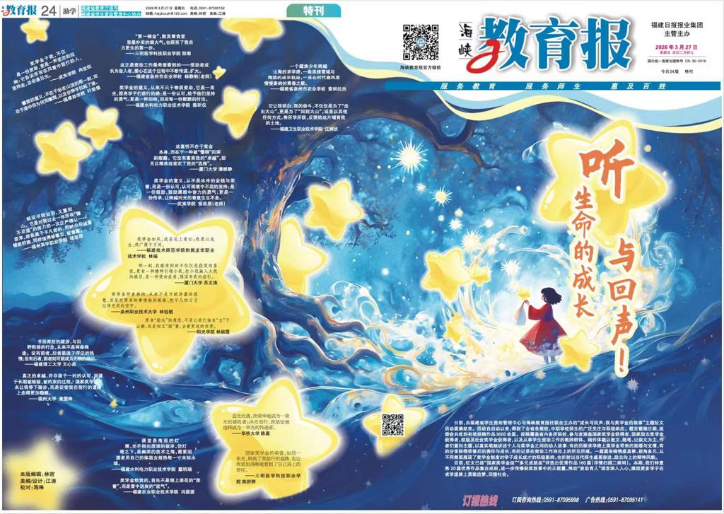 近日,海峡教育报社“成长与回声:我与奖学金的故事” 主题特刊正式推出,我院医疗护理系杨思雨同学、柯倩茹同学凭借真挚朴实的成长感悟成功入选,文章节选在报纸上登载发表。