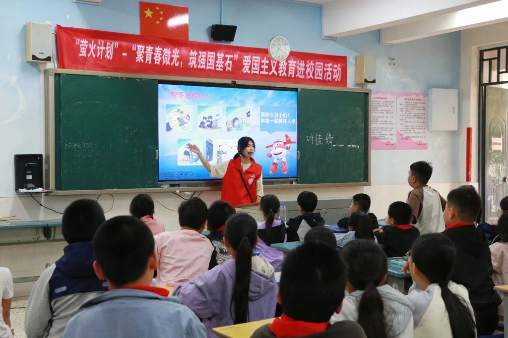 青年兴则国家兴,青年强则国家强。为推动爱国主义、国防及国家安全教育走深走实,4月15日,我院“红色青年实践队”走进闽侯县南通镇瓜山小学,开展“萤火计划”爱国主义教育进校园活动。这支由退役大学生士兵、青年学子组成的队伍,以“聚青春微光,筑强国基石”为核心导向,融合红色传承、国防培育与安全普及,以青春力量践行立德树人使命,让强国复兴信念扎根少年心底。